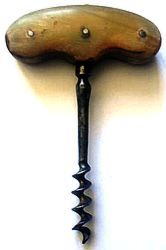 Lire la suitePetit tire-bouchon, poignée en corne. Mèche cannelée en queue de cochon à larges spires, longueur 8cm. Date des années 1930. Référence bibliographique: "Bull's Pocket guide" de Don Bull, page 120. M'a été offert par Joël de Villegouin (Indre).